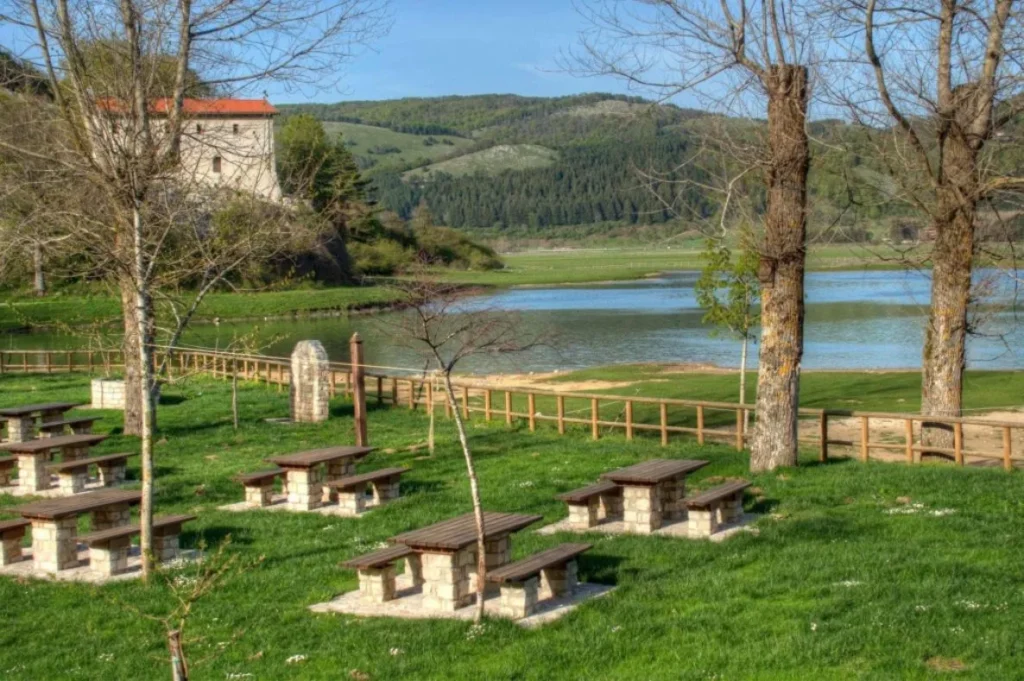 Il lago naturale a 800 metri di altitudine offre opportunità per attività all’aria aperta come trekking, equitazione, ciclismo e pesca.